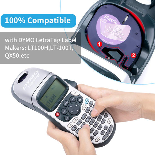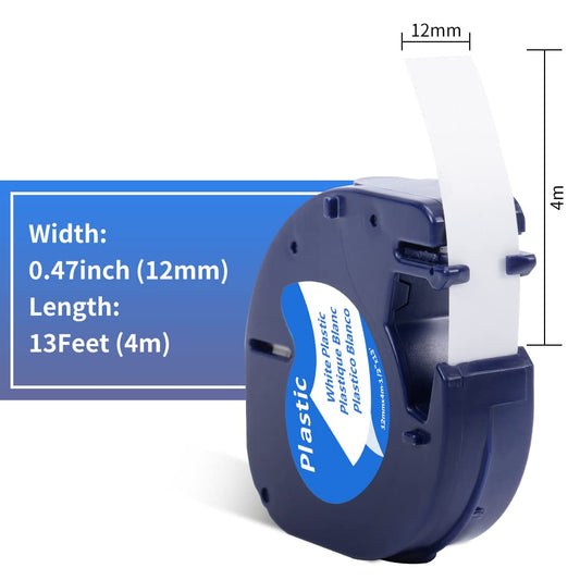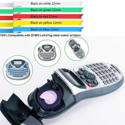 Replace Dymo Letratag Label Tape Plastic Refills 1/2Inch(12mm) Labeling Tape 16952 91331 91332 91333 91335,Compatible for Dymo LetraTag Plus LT-100H LT-100T QX50 Label Maker,13Feet(4m), 5 Pack