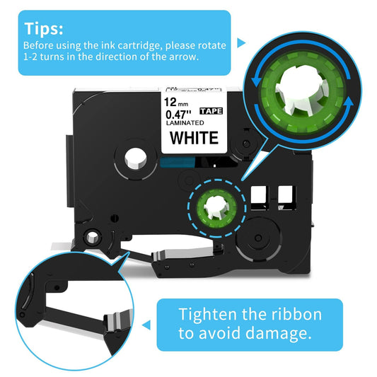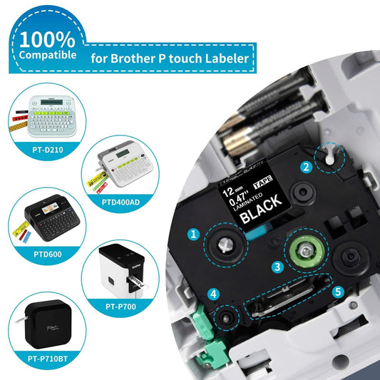 5 Pack TZe-231 P Touch Label Tape Compatible for Brother P-Touch TZ231 TZe231 12mm 0.47 Inch Laminated White TZe TZ Tape, Black on White, for Brother PT-D210 PT-H100 H110 PT-D400AD PT-D600 Label Maker