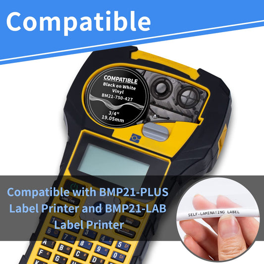 Compatible M21-750-427 Self-Laminating Wire Wrap Brady Labels for Vinyl Patch Panel and Cable Labeling,Work with BMP21-PLUS,BMP21-LAB and IDPAL Label Printer,0.75 Inch Width,Black on White, 2-Pack