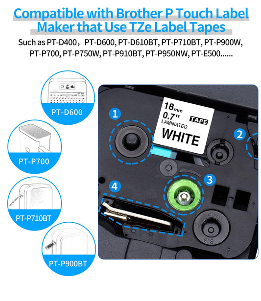 4-Pack Tz Tape 18mm 0.7 Laminated White TZe-241 TZe241 3/4'',Compatible Brother P-Touch Label Maker Tape Refill,Black on White,3/4Inch x 26.2Feet,for Brother Ptouch PTD400 PTD410 PTD600 Label Maker